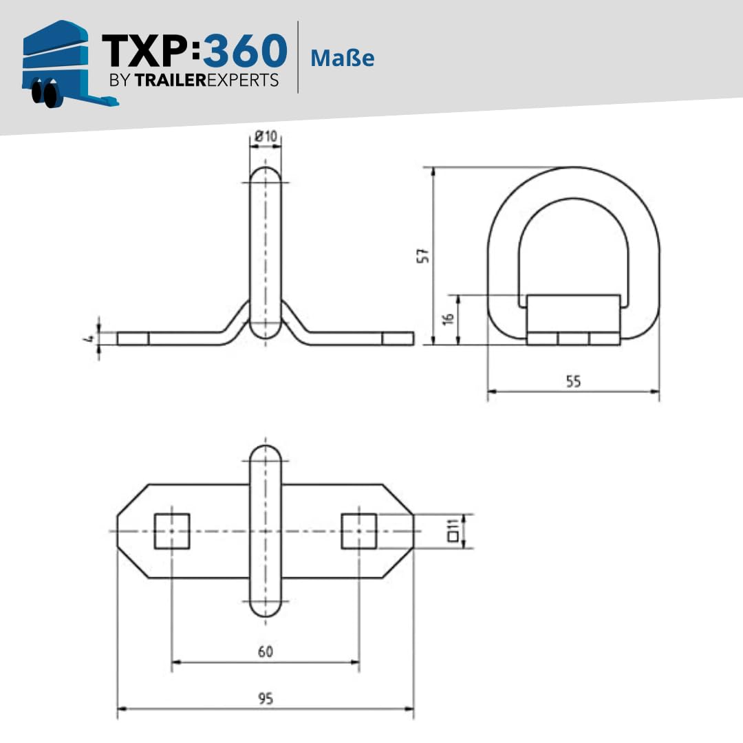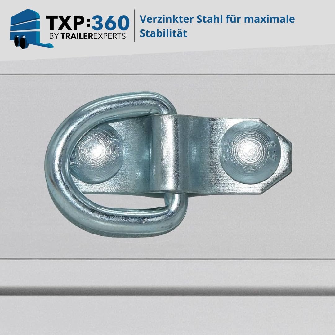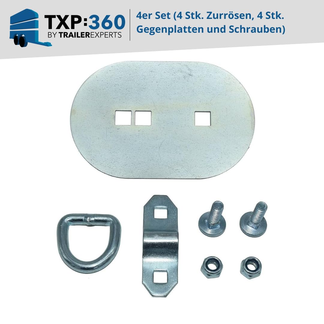 Zurrösen werden in der Regel im Anhängerboden montiert und mit einer Gegenplatte auf der unterseite wird eine zusätzliche Stabilität gewährt.
